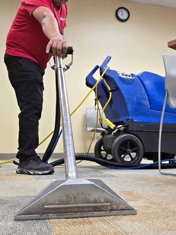 We begin by thoroughly inspecting your carpet to identify stains and areas with heavy soil. Then, we apply a specialized pre-treatment solution to break down dirt, oils, and stains, preparing your carpet for deep cleaning.
